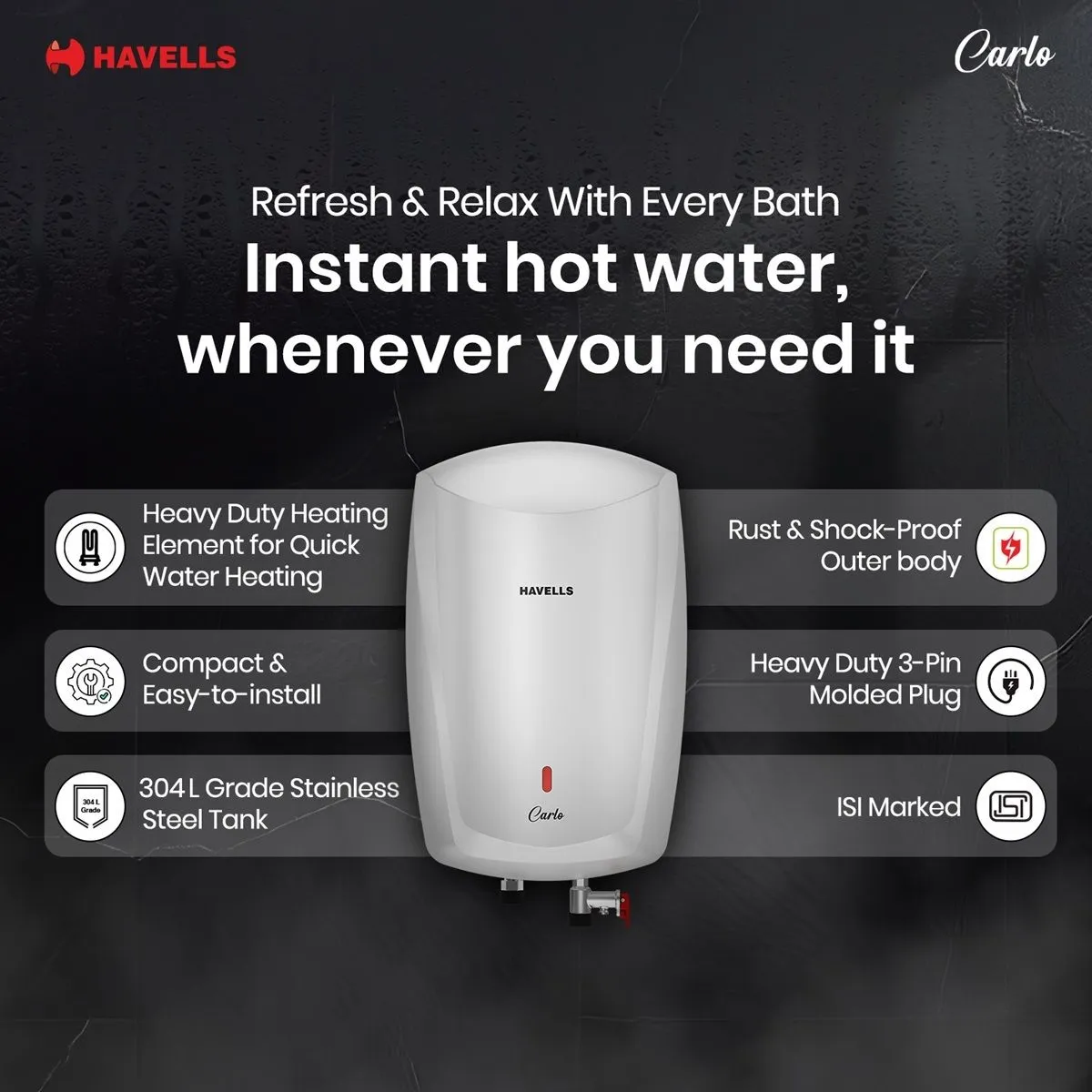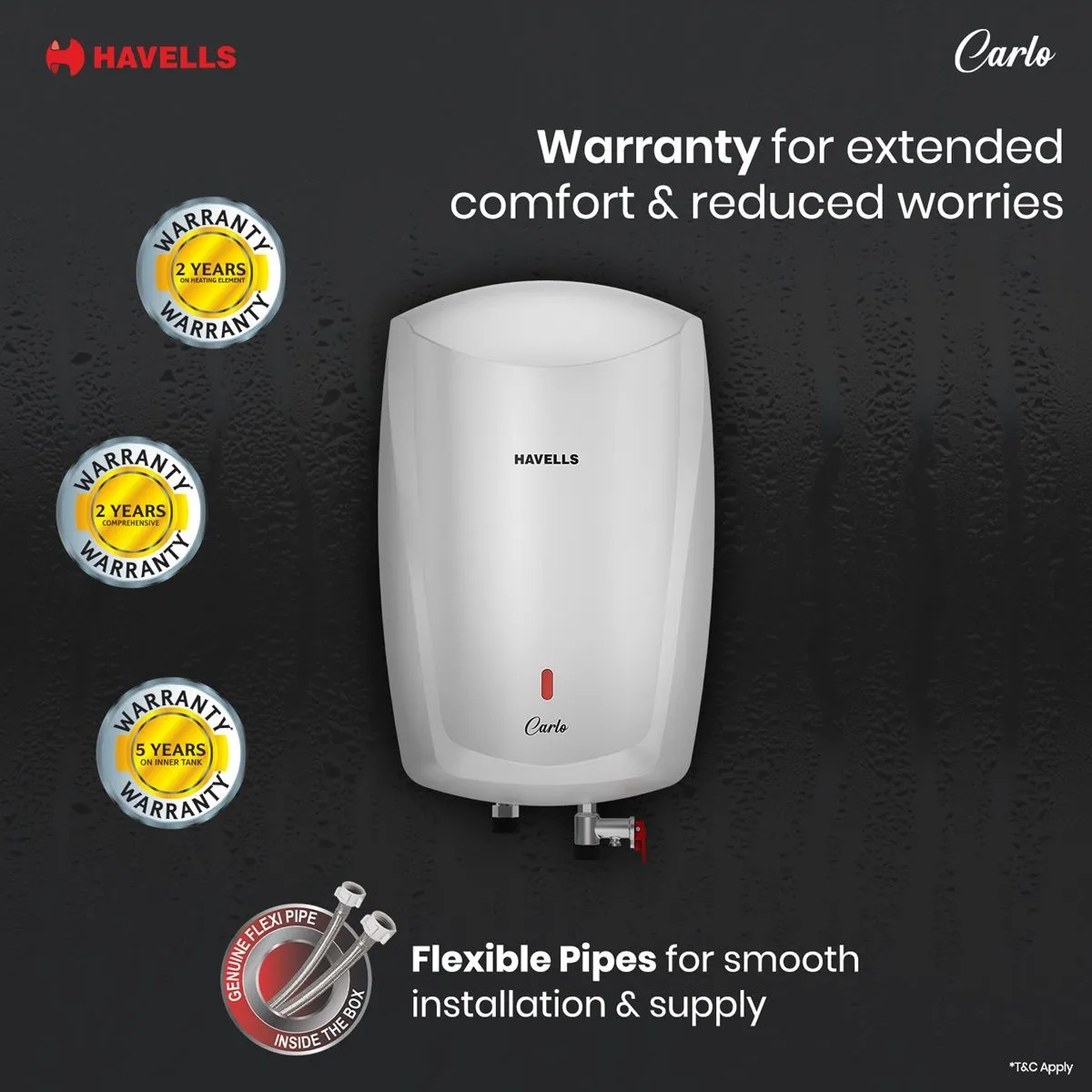 1 N Electric Instantaneous water heater , 1N Mounting kit & 2 N Flexible pipes