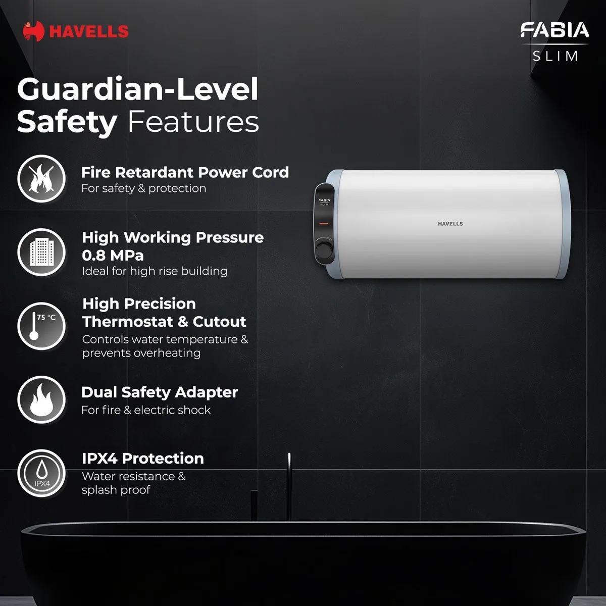 Fabia Slim Horizontal Right Side Storage Water Heater (Geyser)