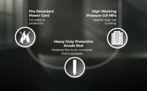 • Heavy duty Protective anode rod: Protects the inner container from corrosion